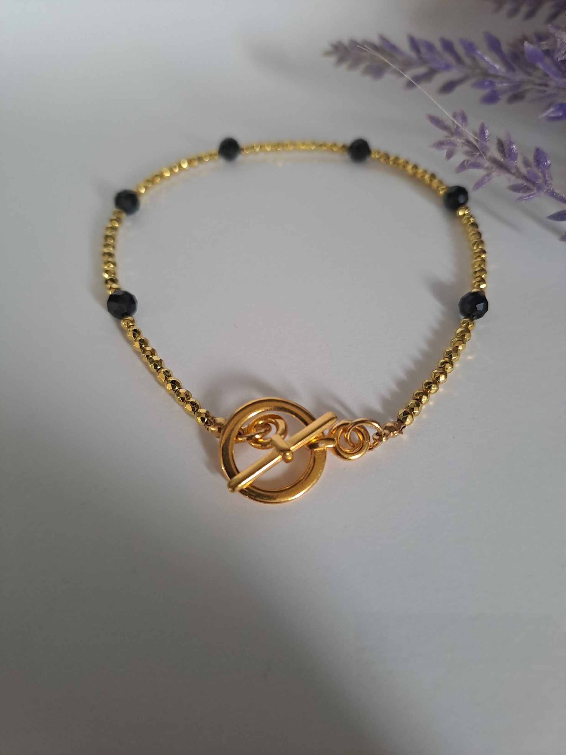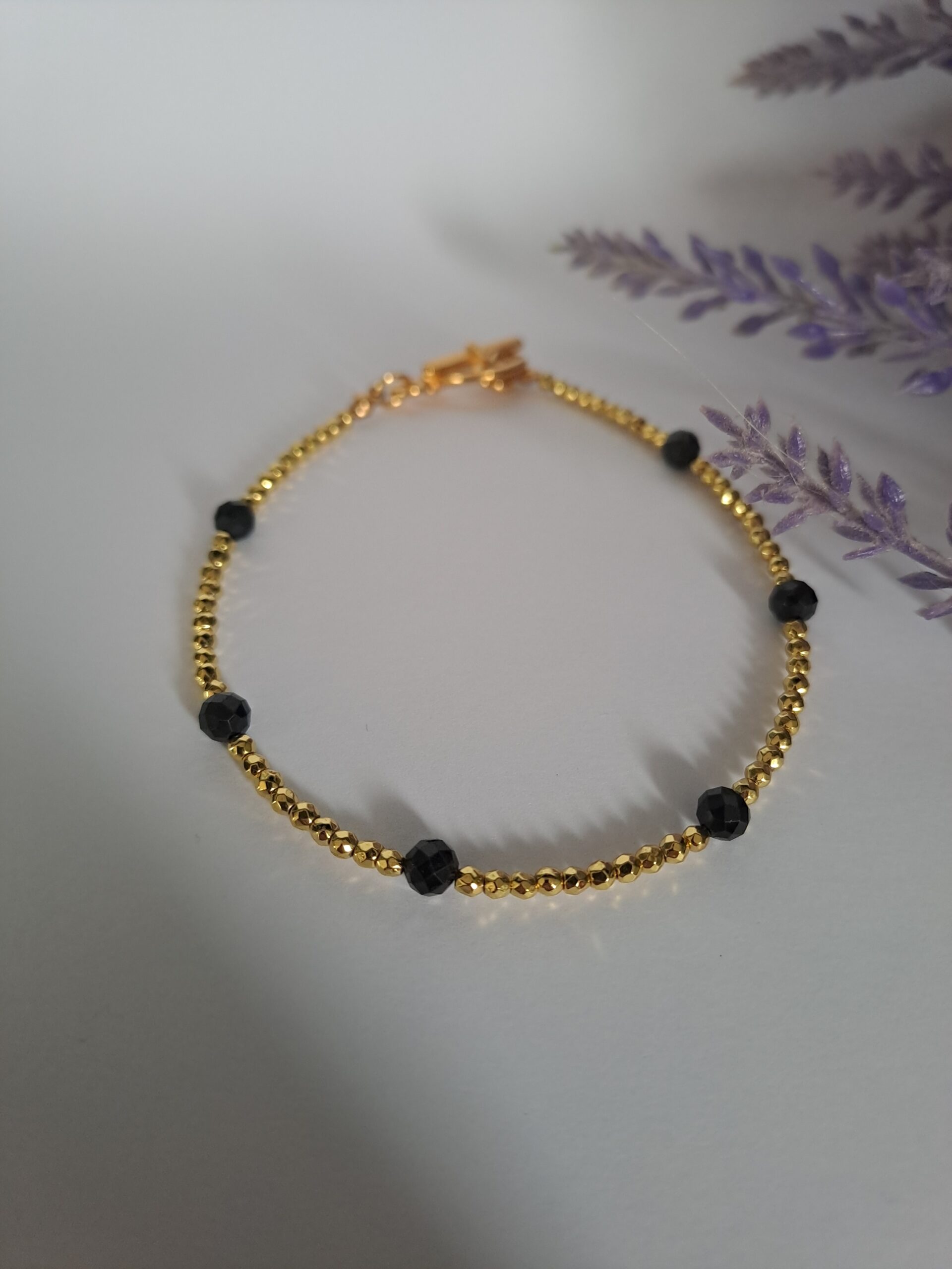 Bransoletka z Onyksem i Hematytami wykonana na lince z zapięciem