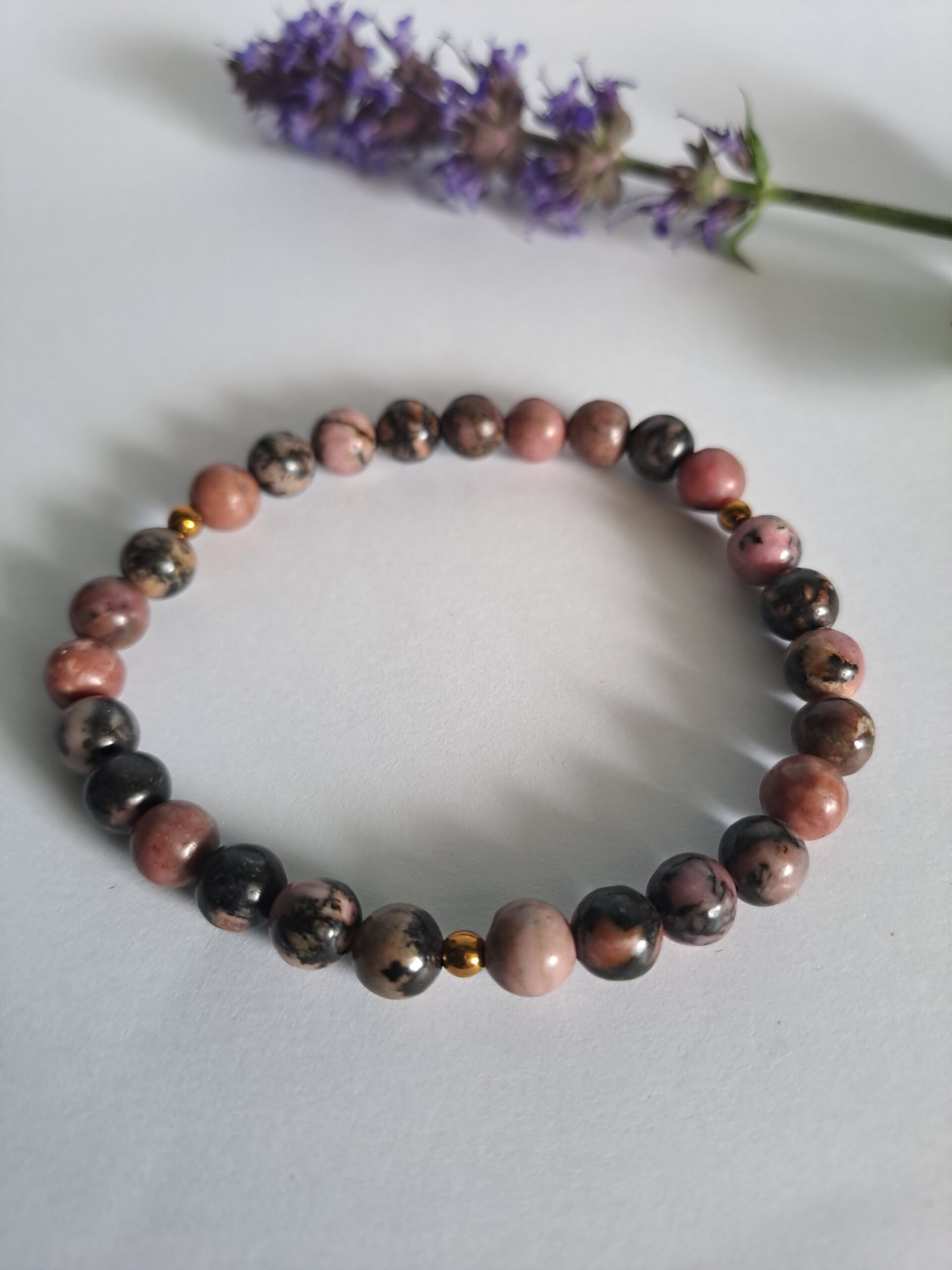 Bransoletka z rodonitem i hematytami obwód 18 cm