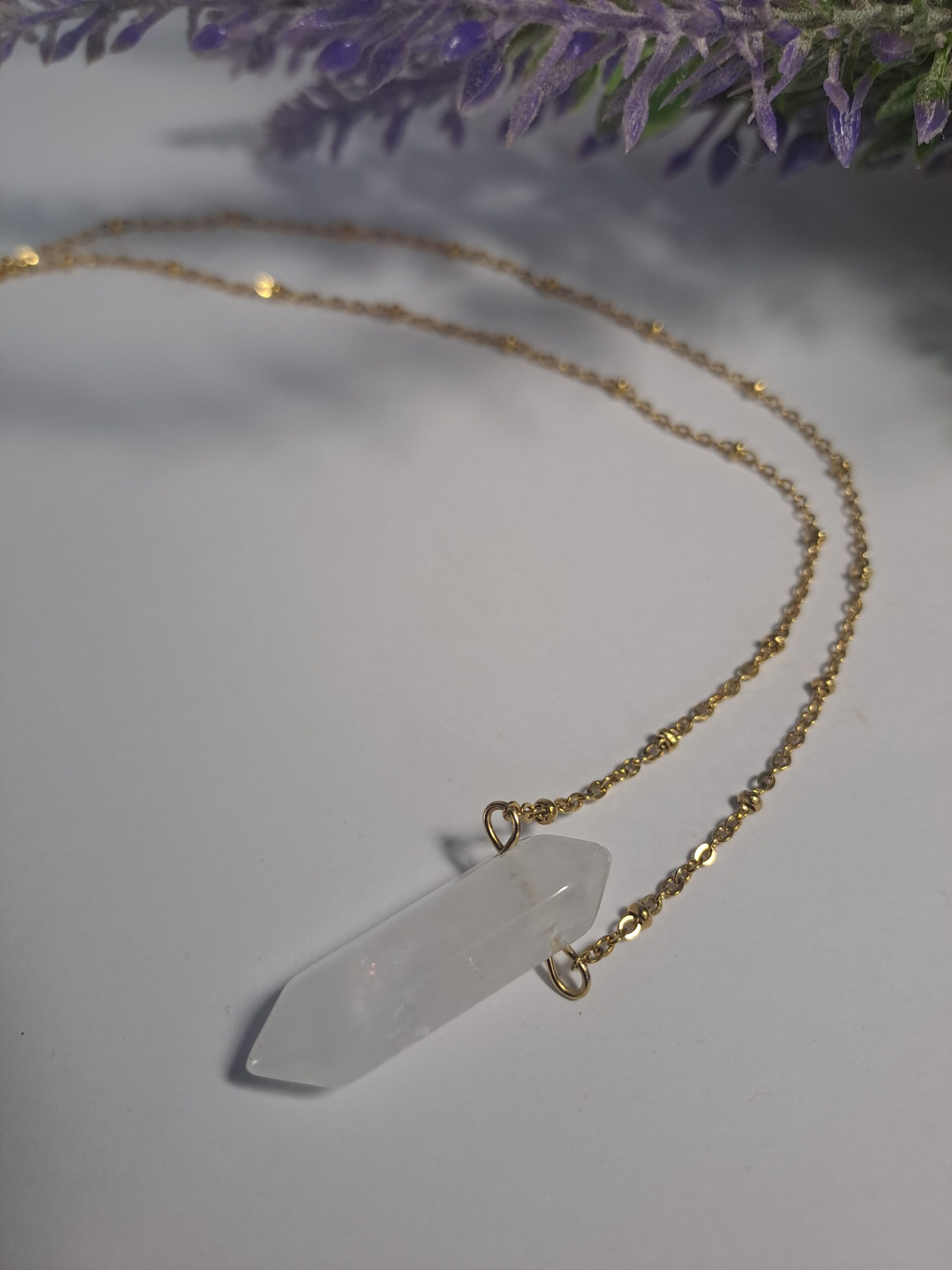 Naszyjnik z kryształem górskim o wysokości 3 cm na łańcuszku ze stali chirurgicznej z zapięciem